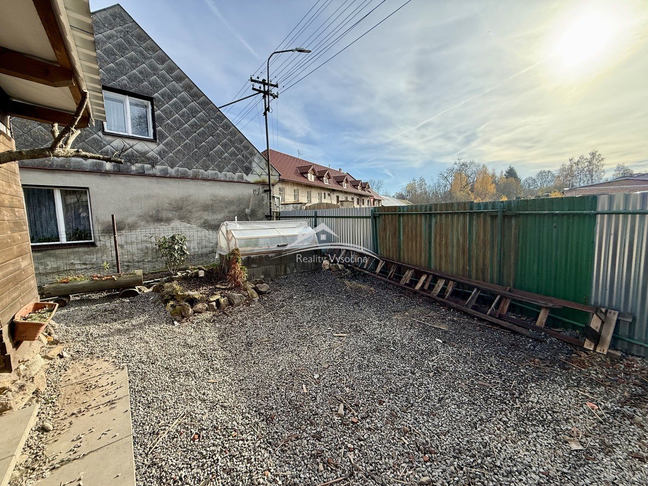 Za domem se nachází menší kolna na dřevo a nad celým domem prostorná půda. K domu náleží malý dvorek bez zahrady.