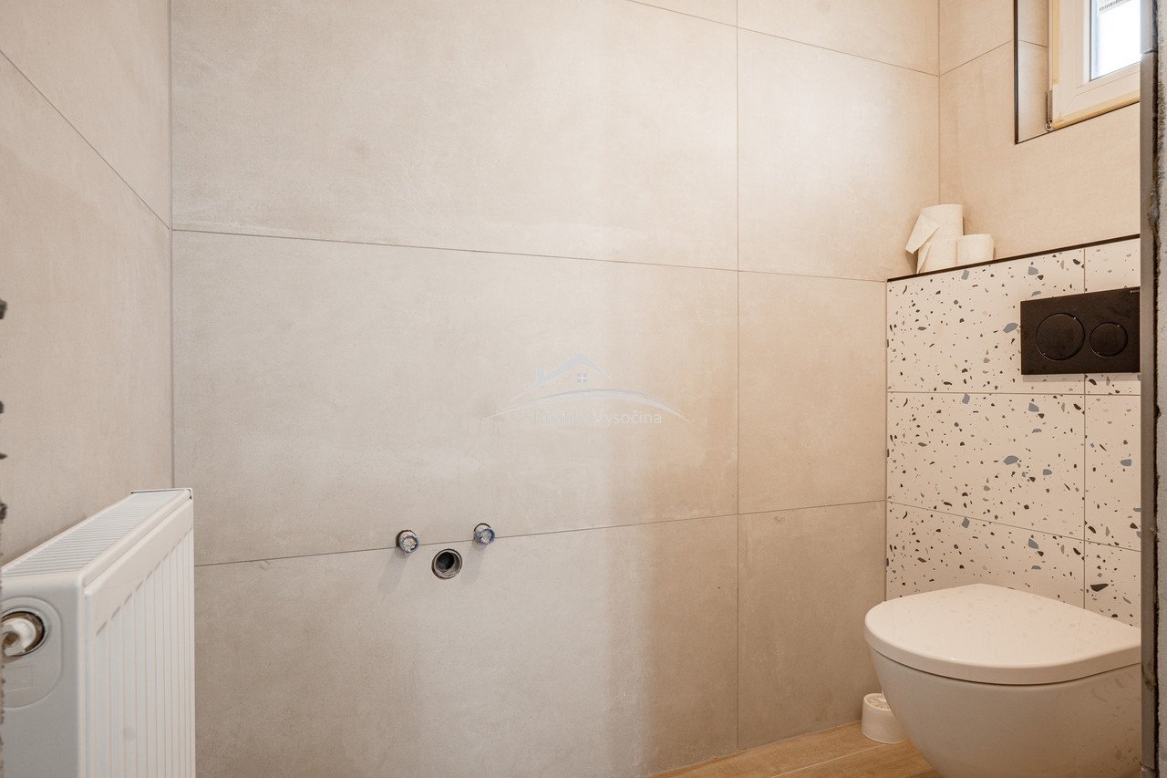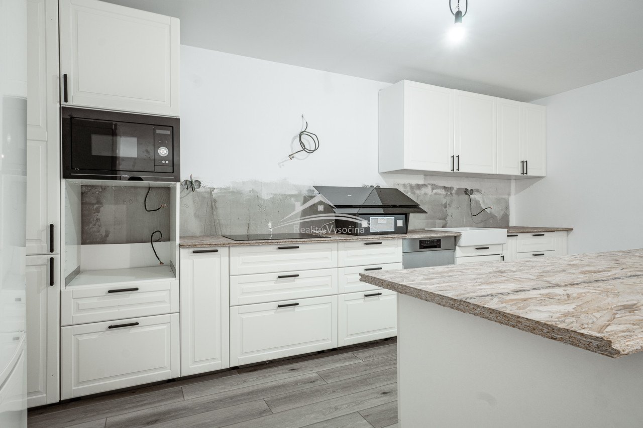 V interiéru je téměř dokončena moderní kuchyňská linka se spotřebiči značek AEG a Mora, koupelna nabízí vanu i sprchový kout, WC je samostatné. Součástí nemovitosti jsou hospodářské přístavby, sklady a garáže vhodné pro dílnu, garážování nebo rozšíření obytné části.