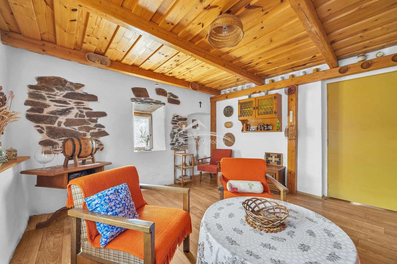 Interiér domu si zachoval původní atmosféru venkovského stavení, nachází se zde původní klenuté a trámové stropy, které dodávají domu jedinečný charakter. Chalupa se prodává včetně vybavení tak, jak je zachyceno na fotografiích, a je tak připraven k okamžitému užívání.